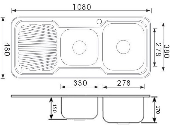 SKU: P1080RHB 1 & 3/4 Right Hand Bowl Sink; AIS 304 18/8 grade stainless steel; Rubber Seal; Mounting Clips & Basket Waste inlcuded