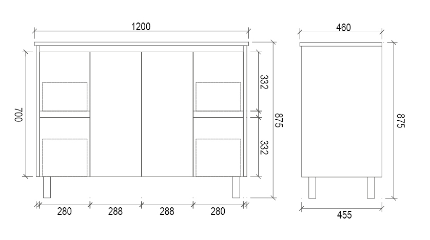 Size 1200x460x875mm