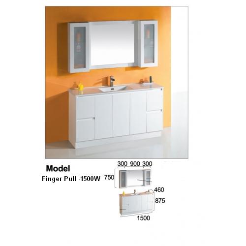 1500 Single Bowl Finger Pull Vanity With Kickboard 1500 x 460 x 875mm- High Gloss Polyurethane Cabinet