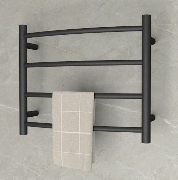 Matt Black 4 round bars Heated Towel Rail curved 440*500*135