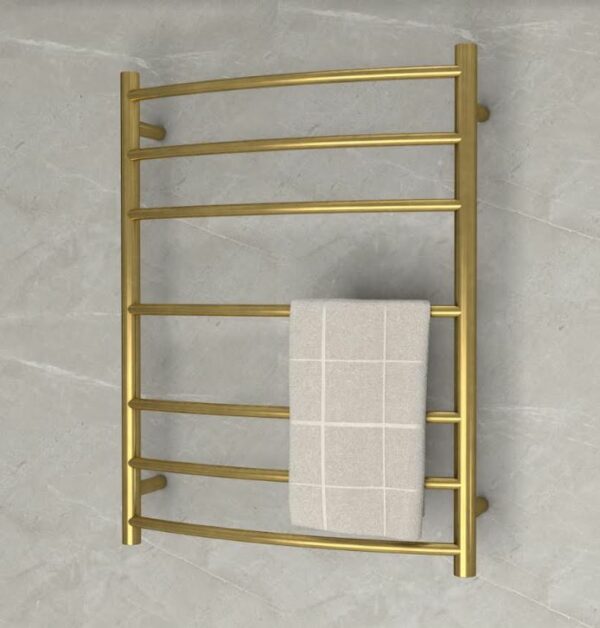 Brushed Gold Heated Towel Rails 7 bars (3+1+3) curved 800*600*145