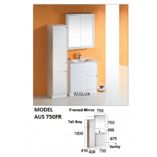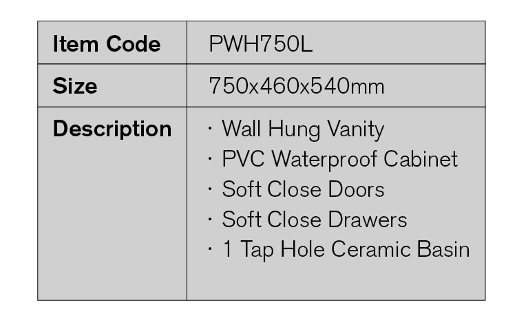 750 PVC Finger pull Wall Hung Vanity Left Drawers