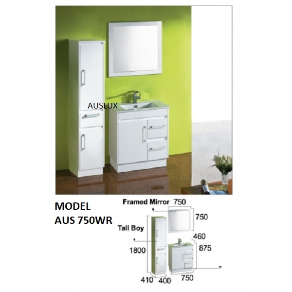 750 square Vanity with Legs and Square Handles 750 x 460 x 875mm