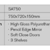 750mm Full Mirror Pencil Edge Shaving Cabinet