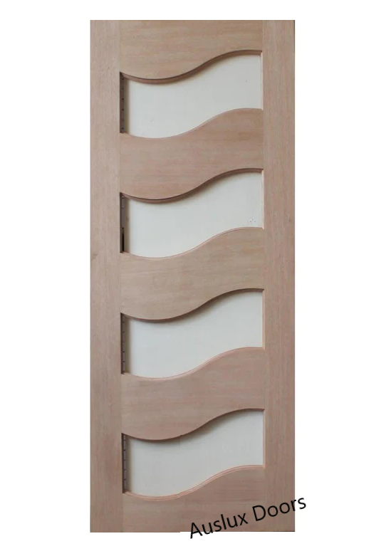 AUS-WAVE glass Solid Engineered Timber Core with a maple Finish Door. Maple Door can be painted or stained. Do not use water based paint, Prices shown in clear glass but also available in different types of glasses – Translucent Frosted, Narrowline Fluted Reeded Glass, Cathedral and Grey tint. Click below for sizes and prices.