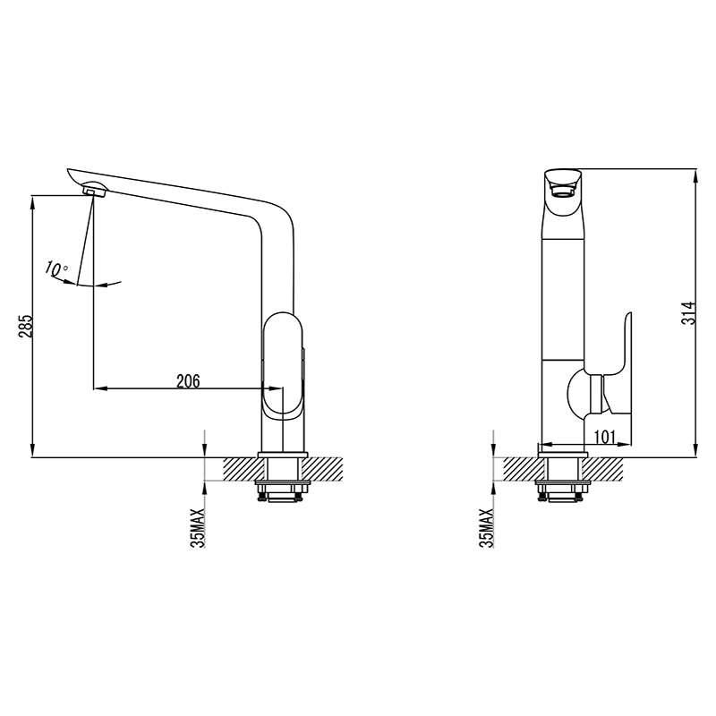 SKU:HYB22-101 BANDA Sink Mixer Solid brass construction with chrome finish; European designed; Kerox 35mm cartridge Germany Neoperl aerator; High rise 360 degree swivel cast brass spout Chrome ; Brass ; Curved