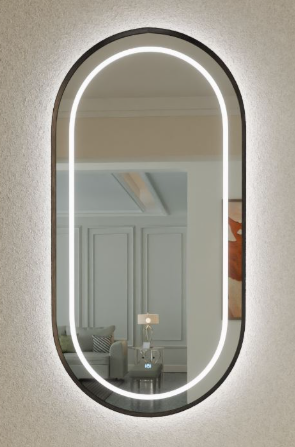900*750 1500*750 Black framed copper free LED mirror with defogger pad on the back and touch free sensor at right hand side frame, bright day light colour only