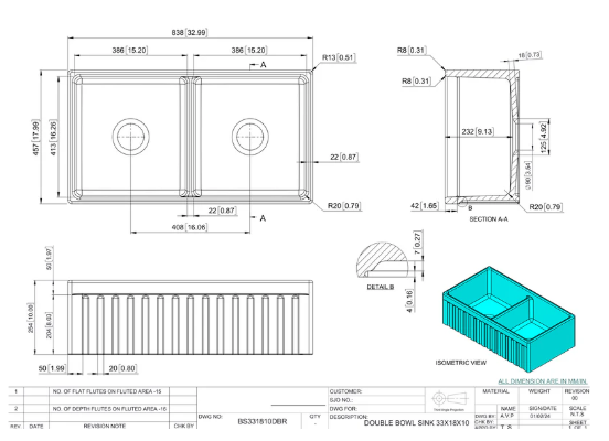 Fine fireclay is a natural material, meaning slight variations (±5%) are part of its unique charm.