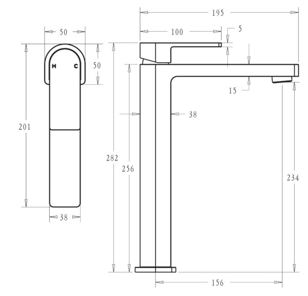 SKU:HYB135-202 FLORES High Basin Mixer Solid brass construction with chrome finish; Kerox cartridge Germany Neoperl aerator; Chrome; Brass;