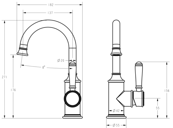 Clasico Heritage Federation Gooseneck Basin Mixer Ceramic Handle Matt Black