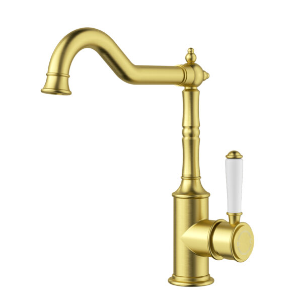Clasico Heritage Federation Sink Mixer Ceramic Handle Brushed Gold