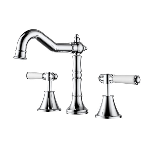 SKU: PCK90NZ04A Clasico Heritage Federation Vintage Ceramic Handle Basin Set • Material: Chrome • Operating temperature 1°C to 70°C • Operating pressure 150~500 kPa • Germany Neoperl Aerator • 1/4 Turn Ceramic Spindles • WELS: 5 Star 5.5L