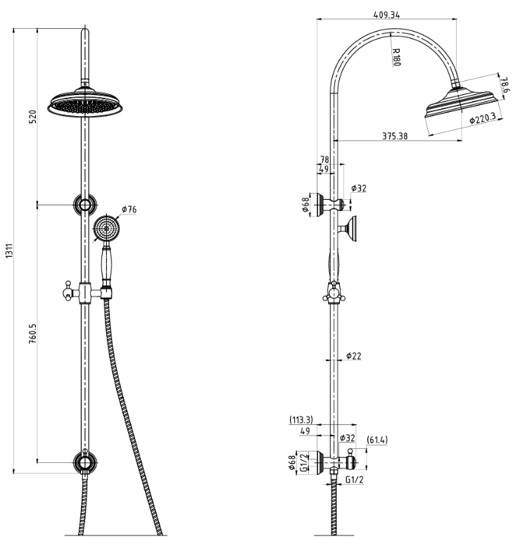 Clasico Heritage Federation Vintage Combo Shower Set Matt Black
