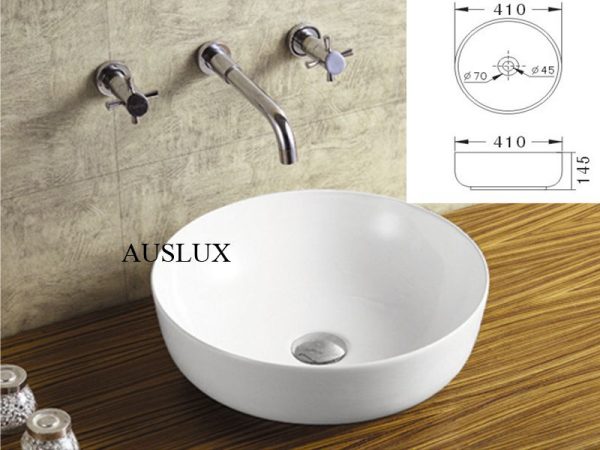 No Tap Hole; Mounting Above cabinet; Plug & Waste sold separately Ceramic & White