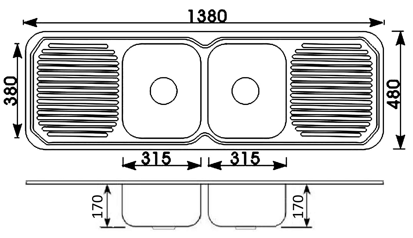 Cora Double Bowl & Double Drainer 1380 x 480 x 170mm