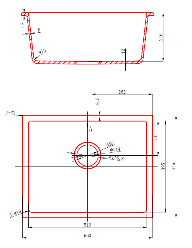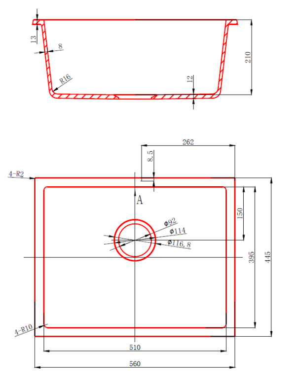 SKU: PGR5644-MB Single Bowl Composite Granite 560 x 445 x 210mm Undermount Sink