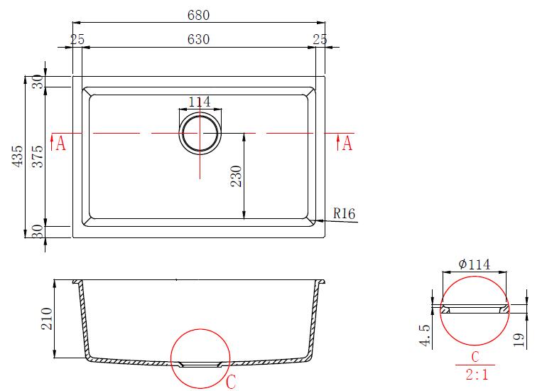 Cora Granite Sink Single Bowl 680x430x230 Black