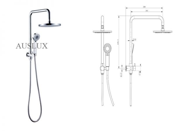 Round Multifunction Shower Set   Top & Bottom Inlet Brass slider Brass Diverter 1.5m Double Hooked Stainless steel hose 3 Function Hand Shower   WELS