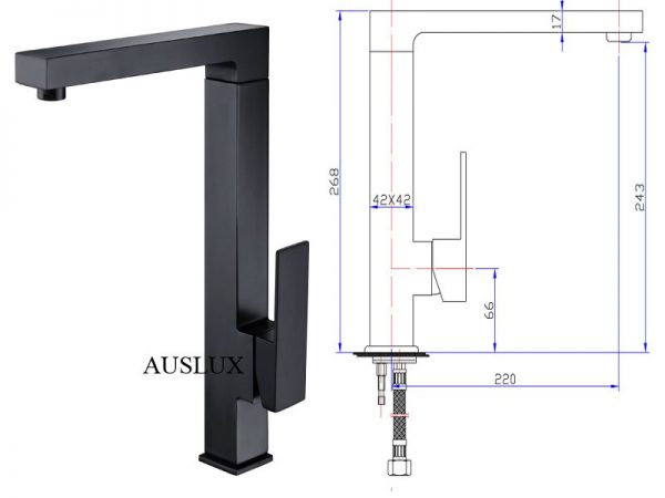 High rise square sink mixer. Square handle, 35mm Ceramic Disk Cartridge, 5 Star water Rating.