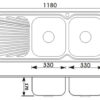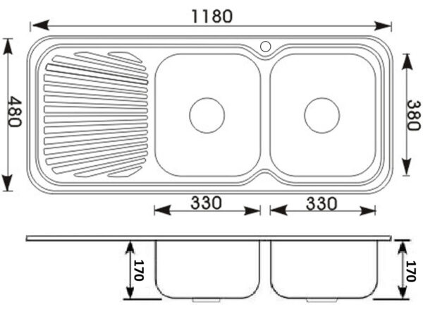 SKU: P1180RHB Double Right Hand Bowl Sink; AIS 304 18/8 grade stainless steel; Rubber Seal; Mounting Clips & Basket Waste inlcuded