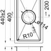 SKU:PS200R Bowl: 200 x 400 x 190mm; Overall: 240 x 440 x 190mm; Thickness: 1.2mm; Square UnderMount Sink; AIS 304 18/8 grade stainless steel; Mounting clips & basket waste inl.