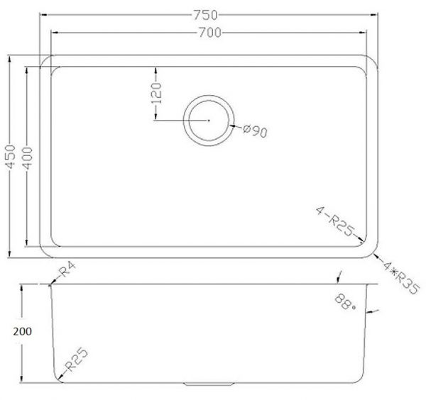 Eden Above Undermount R10 580 x 440 x 200mm