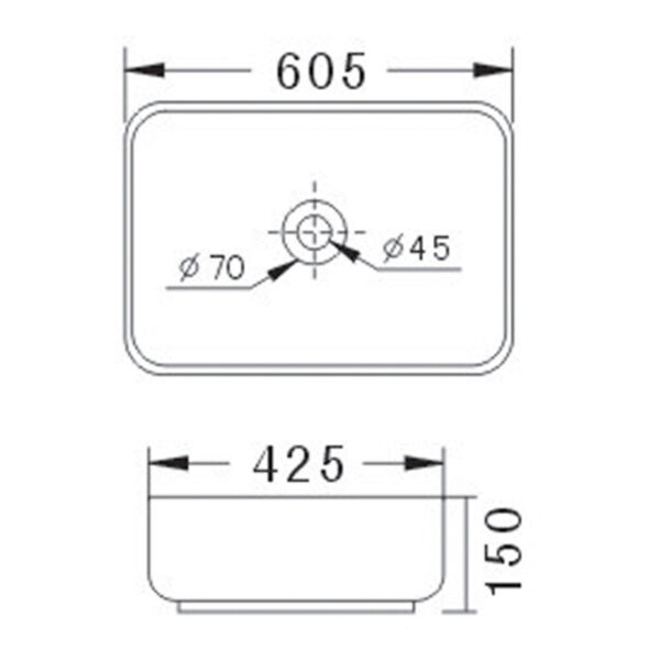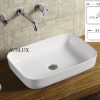 No Tap Hole; Mounting Above cabinet; Plug & Waste sold separately Ceramic & White