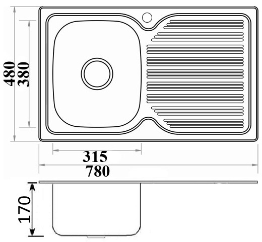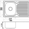 Eden Single Bowl & Single Drainer 780 x 480 x 170mm