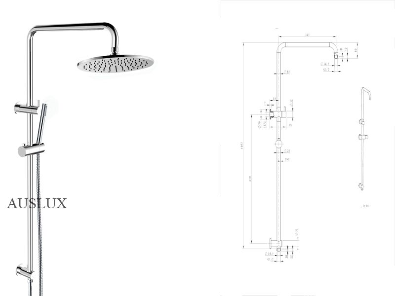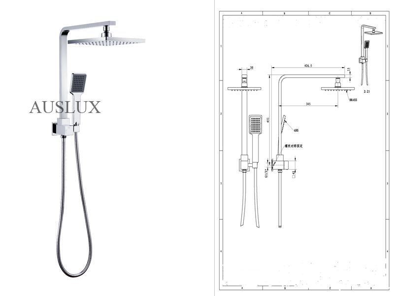 SKU: PHC7121S-BG Square Multifunction shower set 30x15mm brass rail Brass slider Brass diverter 1.5m Double Hooked Stainless steel hose 3 Function Hand Shower 3 star, 8.5L/M WELS