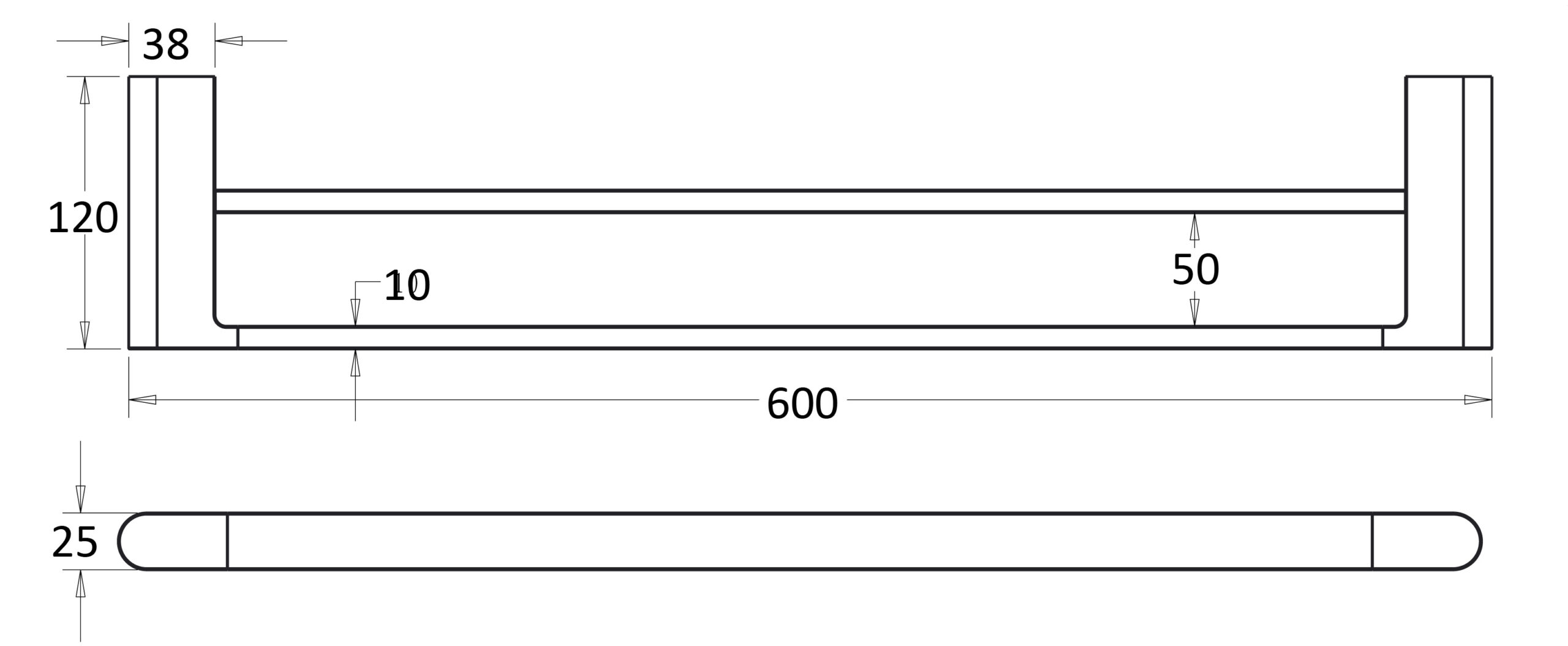 SKU: 55302-600-BN Double Towel Rail Brushed Nickel Brass & Zinc Alloy 600mm