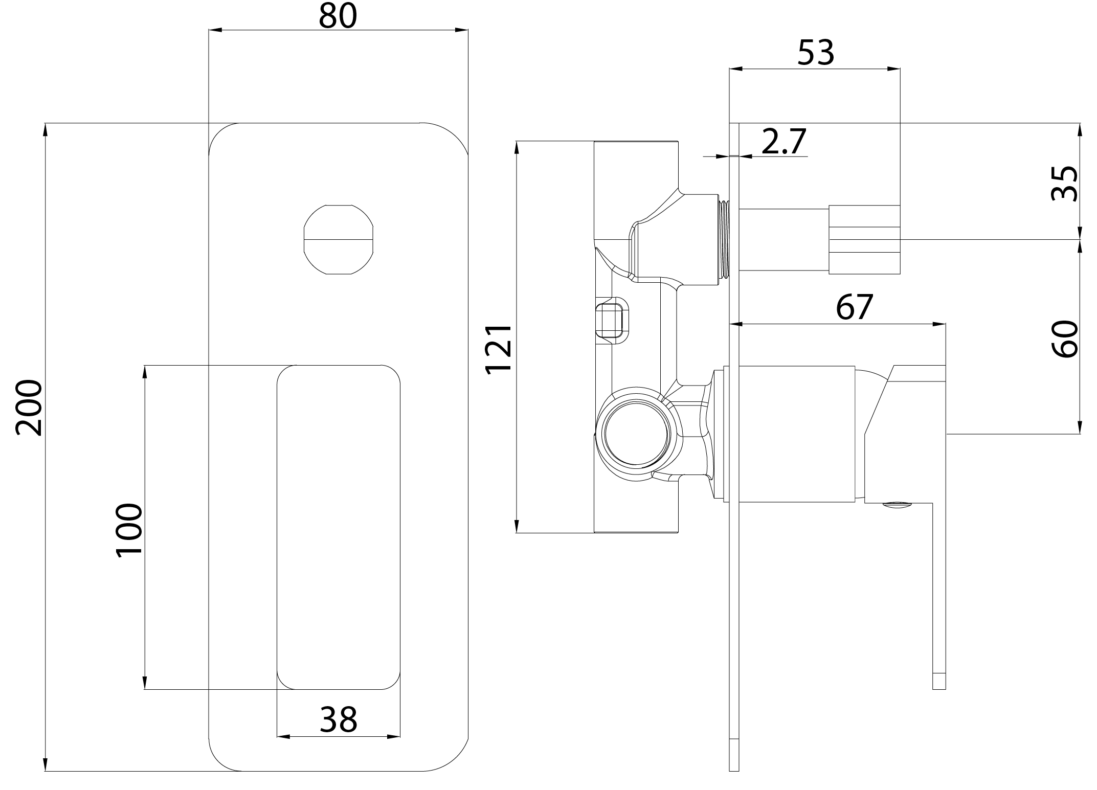Matte Black Ceram Wall Mixer With Diverter