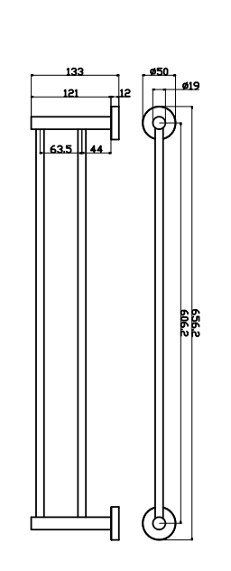 Matte Black Otus Slimline Double Towel Rail 600mm