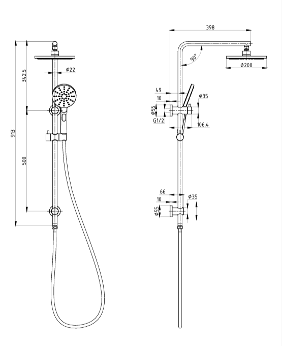 SKU: PHC4502RNS Round Multifunction Shower Set Top & Bottom Inlet Brass slider Brass Diverter 1.5m Double Hooked Stainless steel hose 3 Function Hand Shower Top & Bottom Inlet Brass slider Brass Diverter 1.5m Double Hooked Stainless steel hose 3 Function Hand Shower WELS