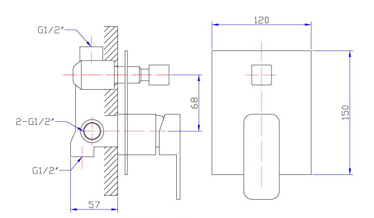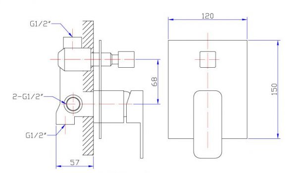 SKU: PSR3005SB WALL MIXER WITH BOTTOM DIVERTER Chrome 35mm Ceramic Disk Cartridge 15 Years Warranty