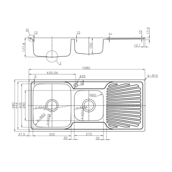 Otus 1 & 3/4 & Drainer Sink 1080 x 480 x 178mm