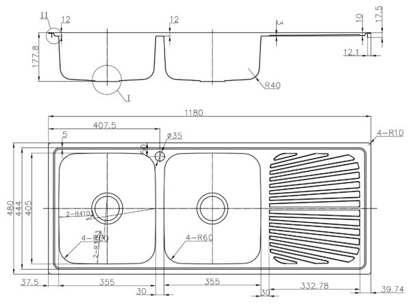 Otus Double Bowl & Drainer Sink 1180 x 480 x 178mm