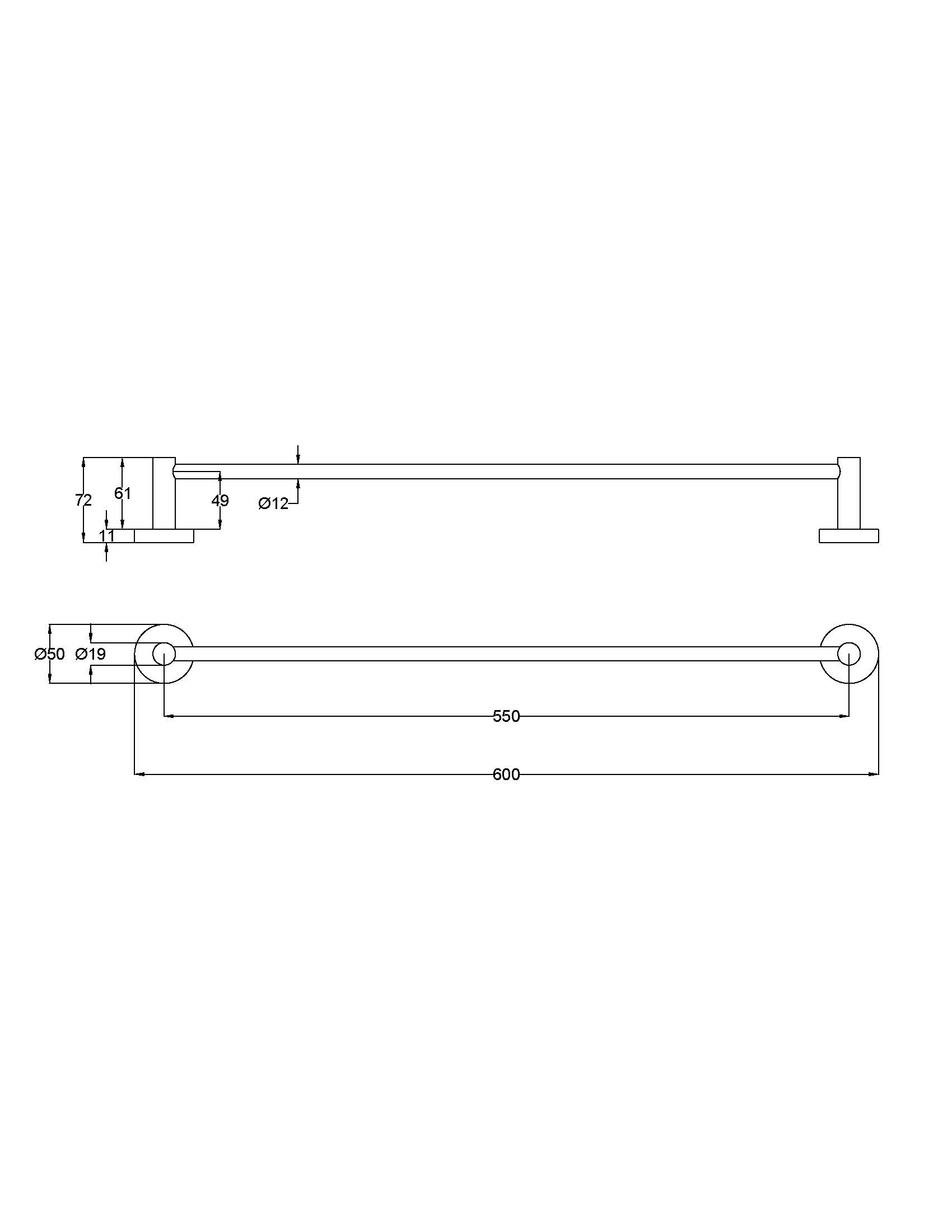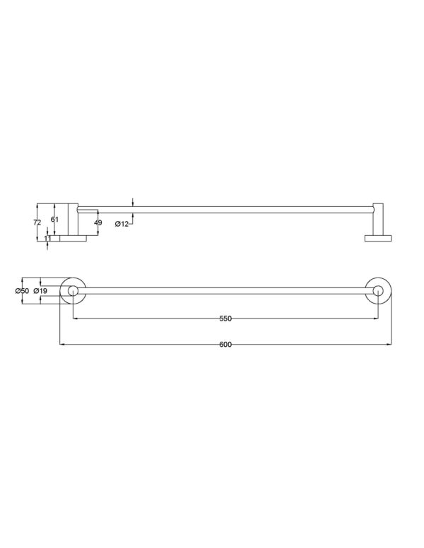 SKU: 4502-600MB Otus Slimline Single Towel Rail