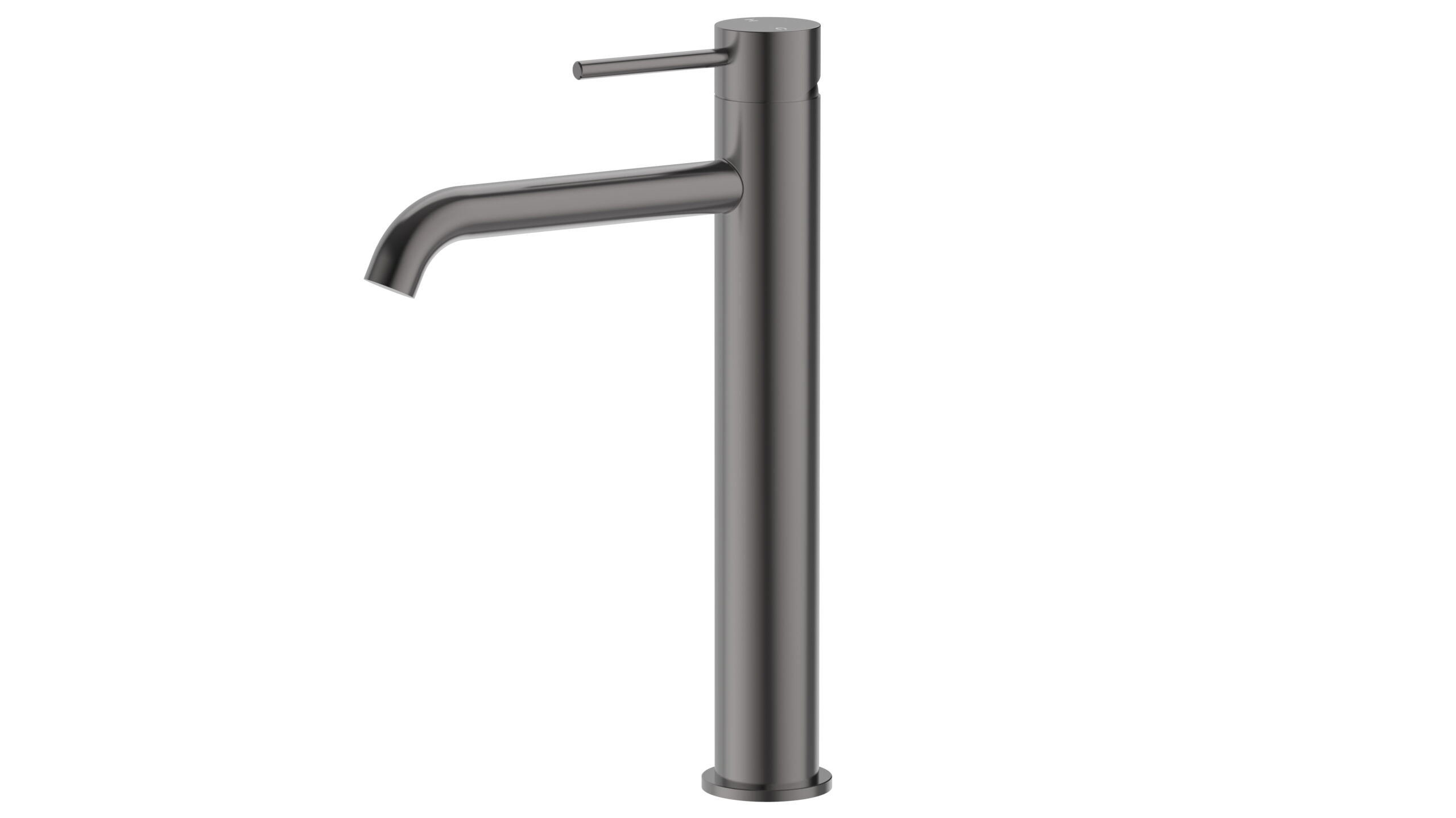 Otus Slimline SS Highrise Basin Mixer Curved Spout Gun Metal
