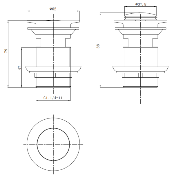 Pop up Waste No Overflow Brass & Chrome SKU: BW002