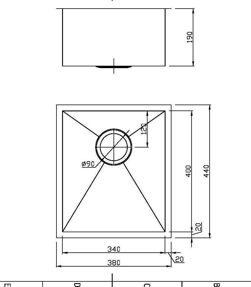 Square Undermount Stainless steel sink. Plug-waste. Can be used both for kitchen and Laundry.