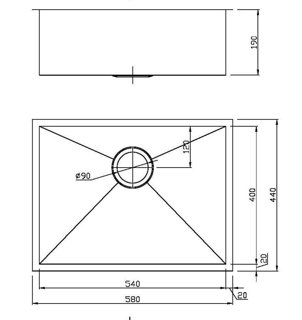 Square Undermount Stainless steel sink. Plug-waste. Can be used both for kitchen and Laundry.