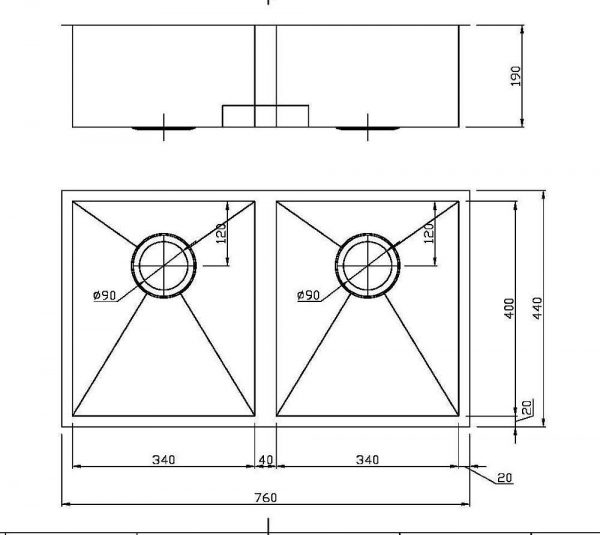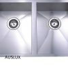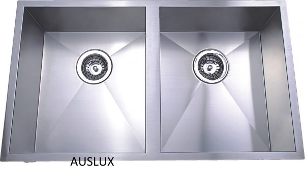 Double Bowl Square Undermount Stainless steel sink. Plug-waste. Can be used both for kitchen and Laundry. Size: 440 X 760mm. Click the diagram below to see the sizes.