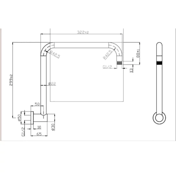 Round Rectangle Curved Shower Arm