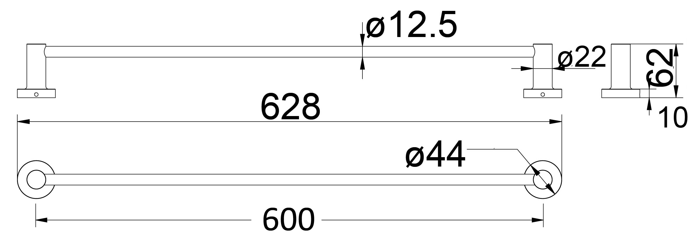 Single Towel Rail Zinc Alloy & Chrome 600mm