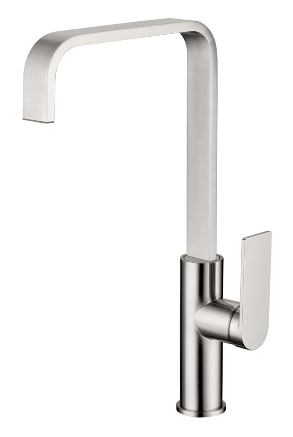 SKU: PBS1001BN Gooseneck Sink Mixer Brushed Nickel 25mm Cartridge WELS (5 Star 5.5L/Min) 15 Years Warranty