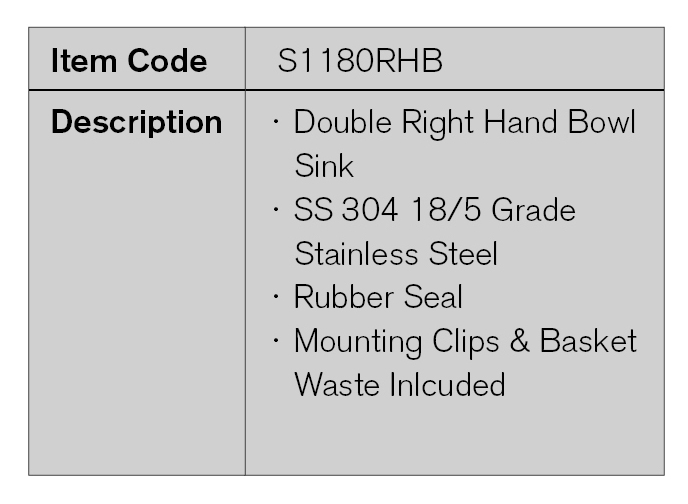S1180 Right Hand Double Bowl Stainless Steel Sink