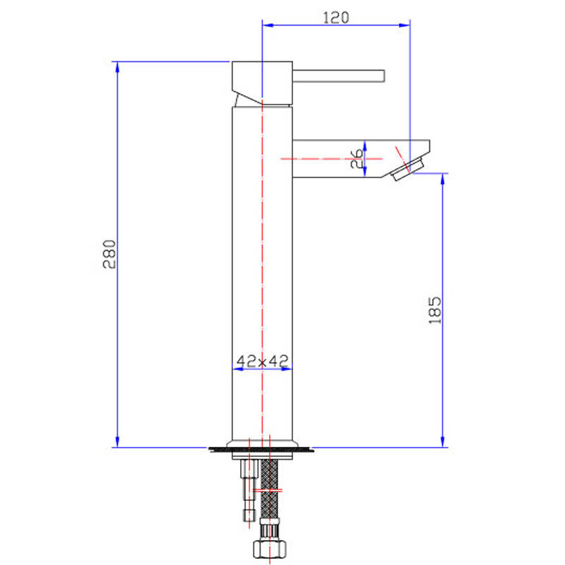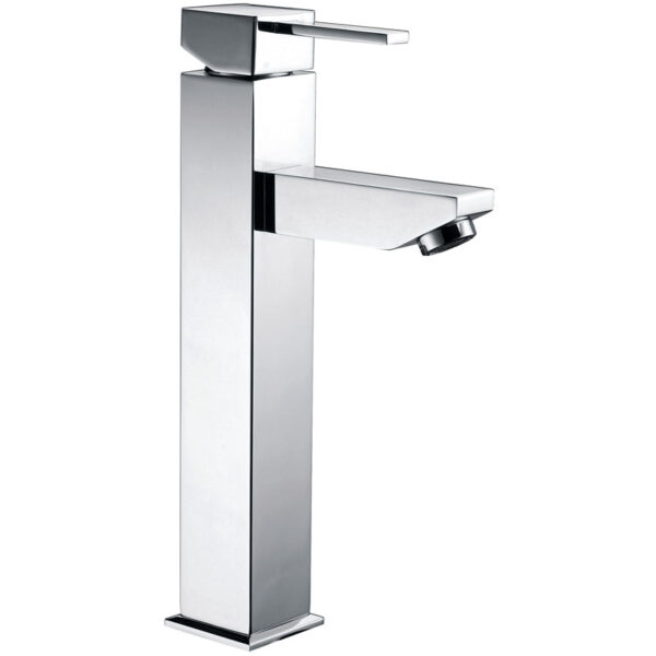 High Rise Basin Mixer Chrome Square Handle 35mm Cartridge 5 Star 5.5L/Min WELS