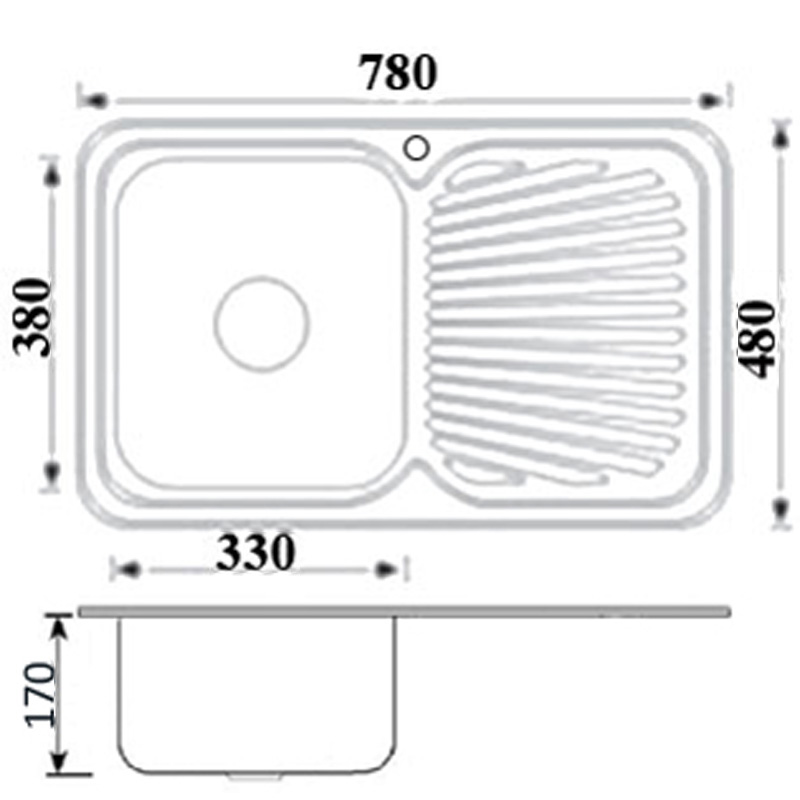 SKU:P780LHB Single Left Hand Bowl; One Drainer Sink; AIS 304 18/8 grade stainless steel; Rubber Seal; Mounting Clips & Basket Waste inlcuded