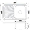 SKU: P780RHB Single Right Hand Bowl; One Drainer Sink; AIS 304 18/8 grade stainless steel; Rubber Seal; Mounting Clips & Basket Waste inlcuded