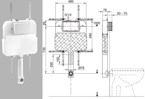 SKU: 3003II Concealed Toilet Cistern 4.5/3.0 L Dual Flush button on wall, avg. 3.3L 4 Star Water Rating Australian Standard